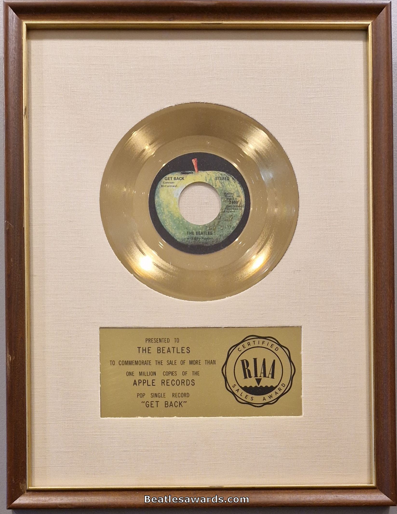 The Beatles - Get Back - RIAA Gold Award - White Matte