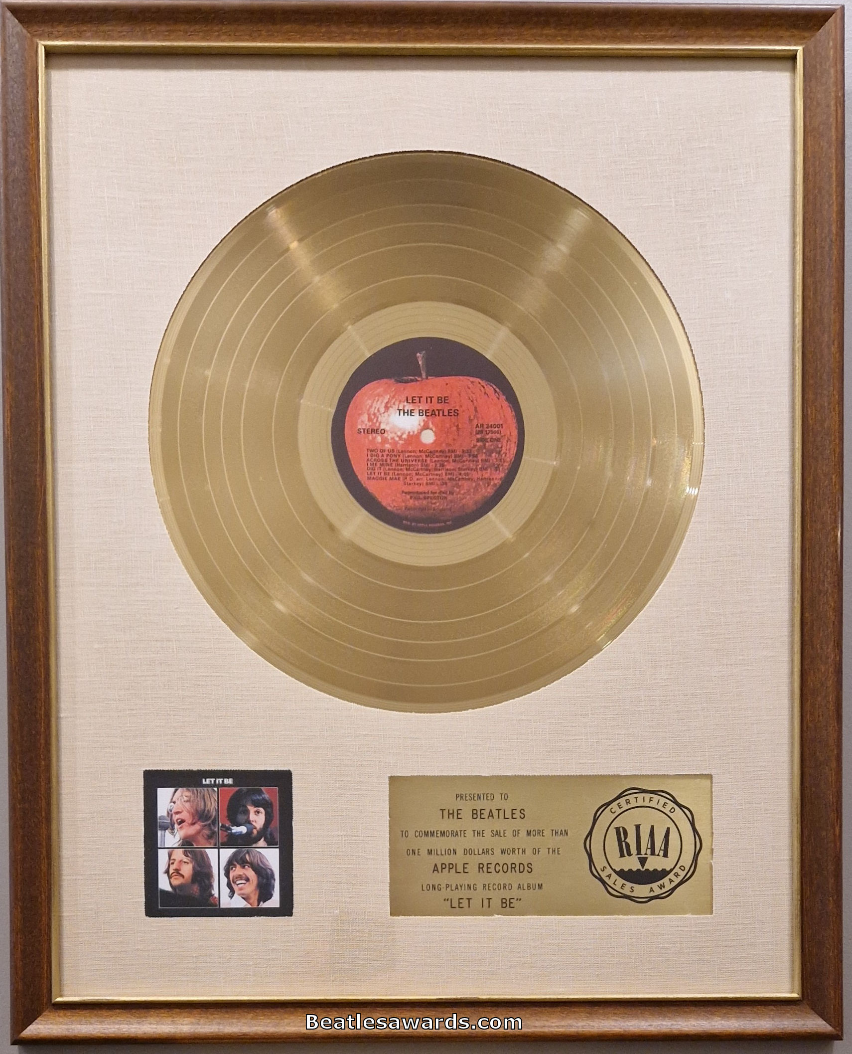 The Beatles - Let It Be - White Matte Album RIAA Gold Award